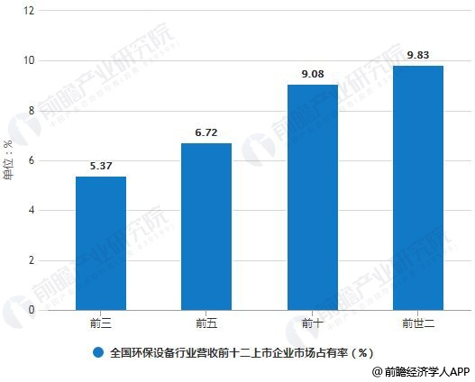 2017年全國環(huán)保設(shè)備行業(yè)營收前十二上市企業(yè)市場占有率統(tǒng)計情況