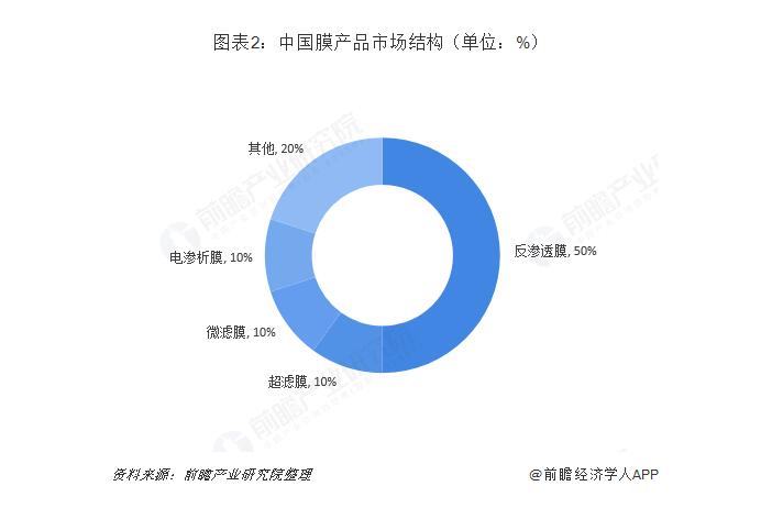 在特定產(chǎn)品方面,膜,總銷售額的50%以上的市場被反滲透膜(RO)和納濾膜(NF)、超濾膜(超濾),微濾膜(MF)和電滲析膜分別占10%,剩下的20%是被氣體分離膜、無機陶瓷膜、滲透膜等類型。