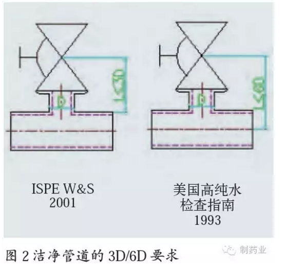 2001年ISPE水和純蒸汽基準(zhǔn)指南的“從主管外壁開始測到支管盲端或閥門密封點的長度L≤3倍的支管直徑D(3D)”;